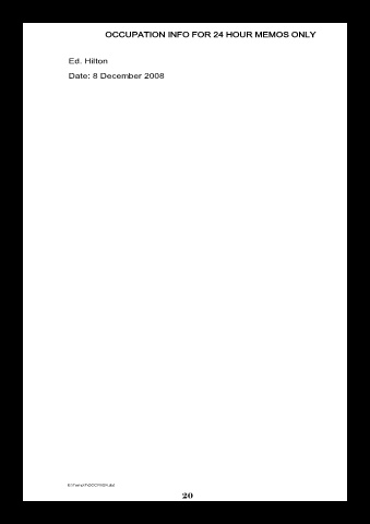 H O R U R O 4 2 O N Y L E M M S O F A P I T C O OCCUPATION INFO FOR 24 HOUR MEMOS ONLY U C O F O N N I Ed. Hilton Date: 8 December 2008 E:\Temp\7\OCCFM24,dot 20