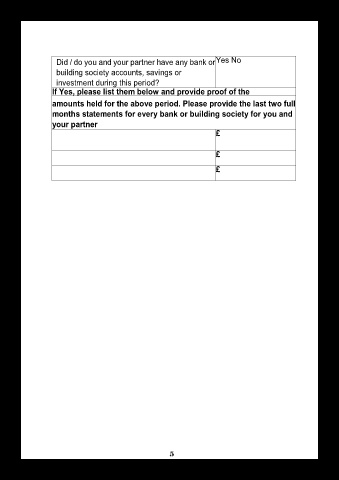 Did / do you and your partner have any bank or Yes No