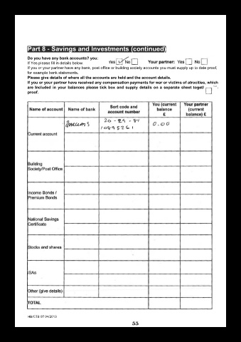 If you or your partner have any bank, post office or building society accounts you must supply up to date proof,