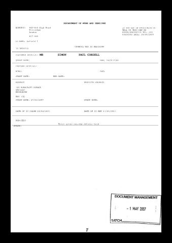 NINO:                                                     DOB:                                                                                                                        14 May 2007