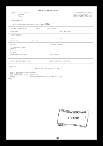 DATE OF IS CLAIM 19/04/2007 DATE OF IS ENT 27/03/2007