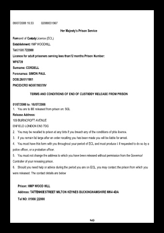 Licence for adult prisoners serving lees than12 months Prison Number: