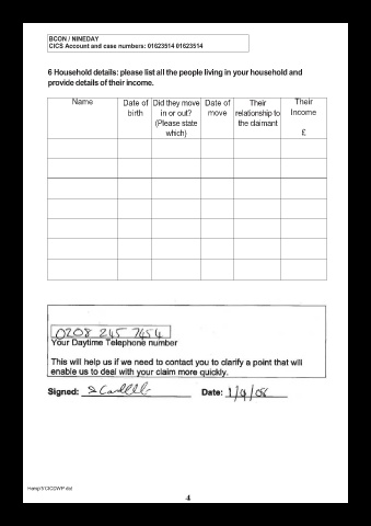 31/7/08 when Income Support was not in pay, and details how you meet