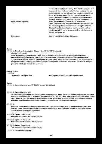 living in a leasehold property - accommodation provided by Waltham Forest?). Perpetrator identified as living on