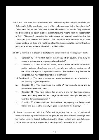 v.     Condition 34 - “You must not use the property in any way that may cause a                                   33.1   I have made attempts to  engage with  the  Defendant but he has  not  been