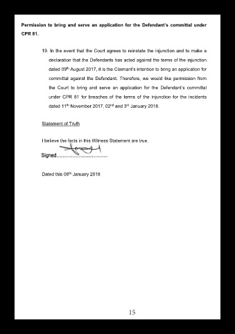 dated 09 August 2017, it is the Claimant’s intention to bring an application for