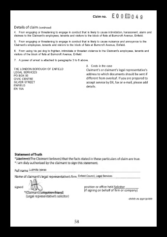 THE LONDON BOROUGH OF ENFIELD Claimant's or claimant's legal representative's