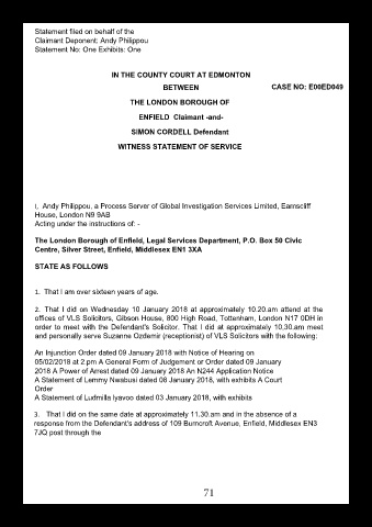 WITNESS STATEMENT OF SERVICE