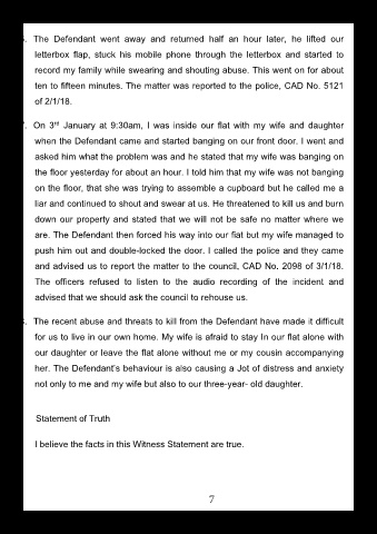 7. On 3 January at 9:30am, I was inside our flat with my wife and daughter