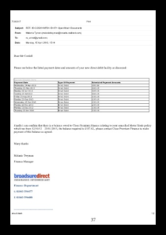 which ran from 12/10/12 – 25/01/2013, the balance required is £157.42,. please contact Close Premium Finance to make