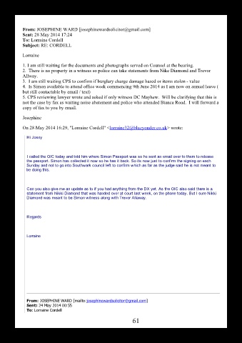 5. CPS reviewing lawyer wrote and asked if only witness DC Mayhew.  Will be clarifying that this is