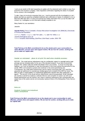 I sent you an email on 9th April requesting an update with the statement and to obtain a copy of an