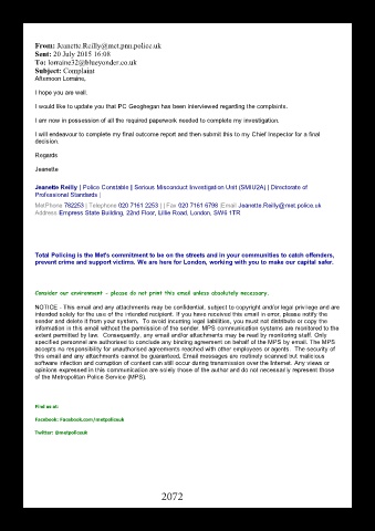 I would like to update you that PC Geoghegan has been interviewed regarding the complaints.