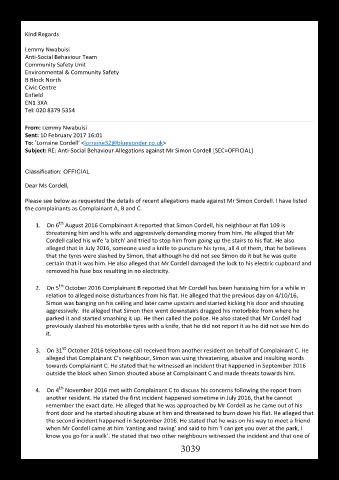 Subject: RE: Anti‐Social Behaviour Allegations against Mr Simon Cordell [SEC=OFFICIAL]