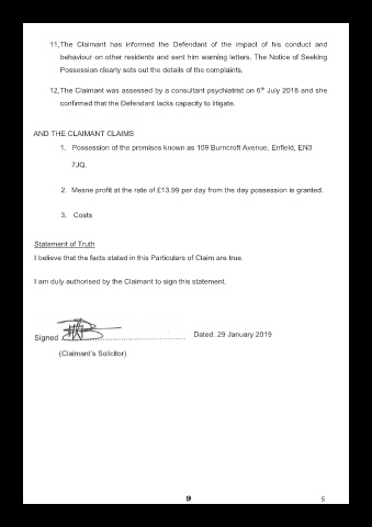 11,The Claimant has informed the Defendant of the impact of his conduct and