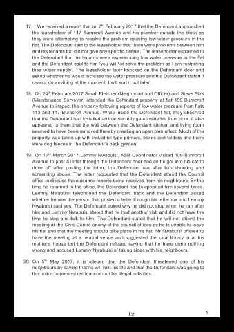 19. On 17 March 2017 Lemmy Nwabuisi, ASB Coordinator visited 109 Burncroft