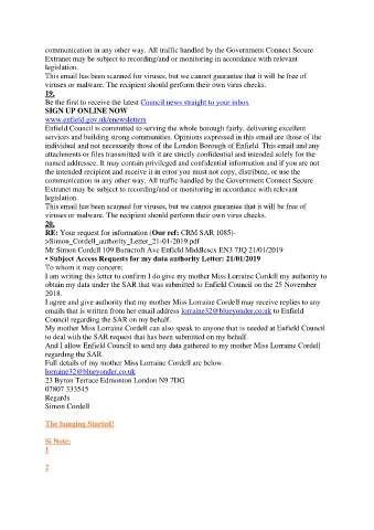 And I allow Enfield Council to send any data gathered to my mother Miss Lorraine Cordell