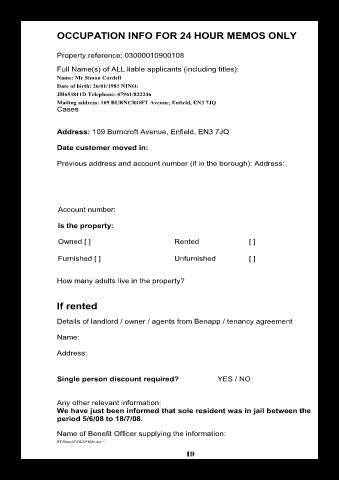 We have just been informed that sole resident was in jail between the