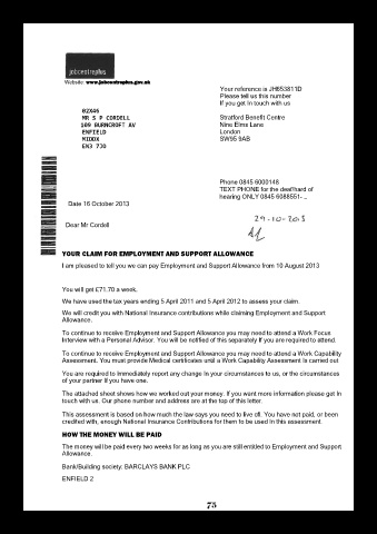 YOUR CLAIM FOR EMPLOYMENT AND SUPPORT ALLOWANCE