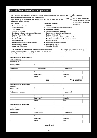 135. Are you or your partner or any children you are claiming for getting any benefits No Part 11.