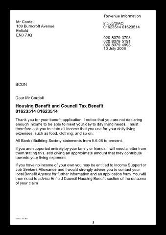 then need to advise Enfield Council Housing Benefit section of the outcome