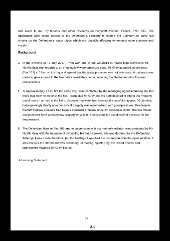 checks on the Defendant's water pipes which are possibly affecting my tenant’s water pressure and
