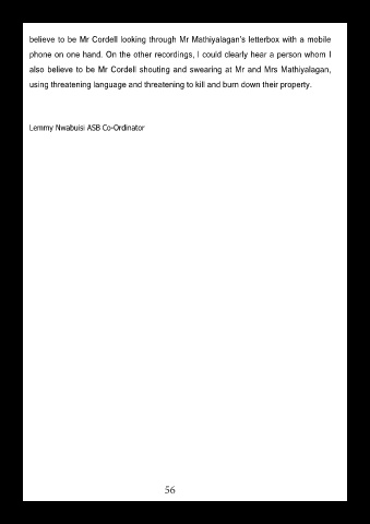 also believe to be Mr Cordell shouting and swearing at Mr and Mrs Mathiyalagan,