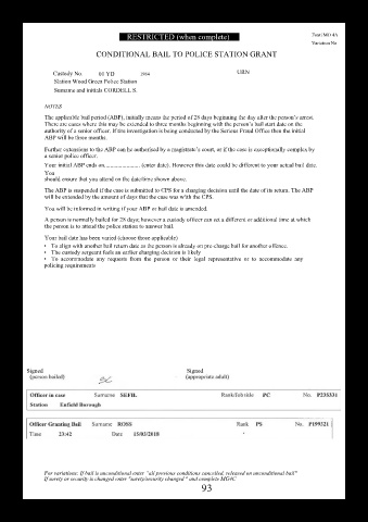 CONDITIONAL BAIL TO POLICE STATION GRANT