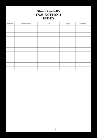 Simon Cordell’s INJUNCTION 1 INDEX Number Information Date Page Report Id 7