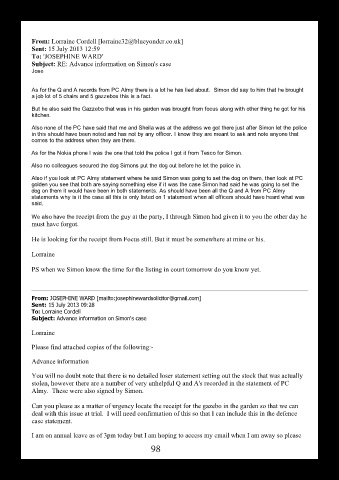 As for the Q and A records from PC Almy there is a lot he has lied about. Simon did say to him that he brought