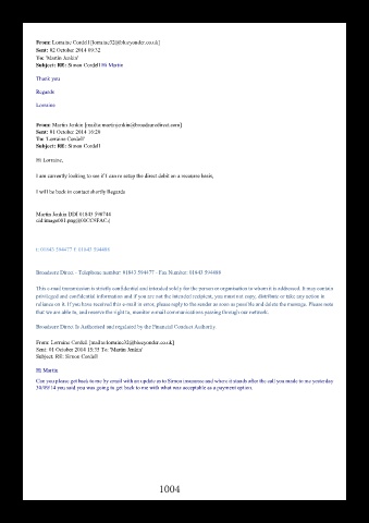 Can you please get back to me by email with an update as to Simon insurance and where it stands after the call you made to me yesterday
