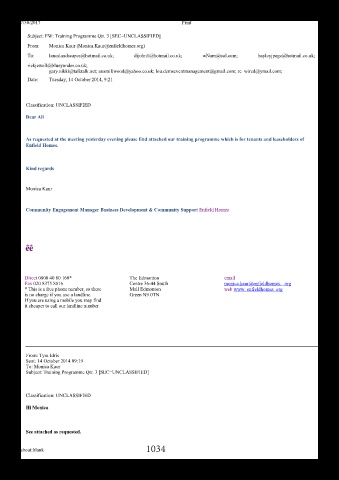 As requested at the meeting yesterday evening please find attached our training programme which is for tenants and leaseholders of