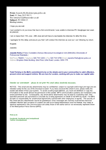I just wanted to let you know that due to Aid commitments I was unable to interview PC Geoghegan last week
