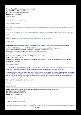 To: Newman Jamie M ‐ HQ Directorate of Professional Standards <Jamie.Newman@met.pnn.police.uk>