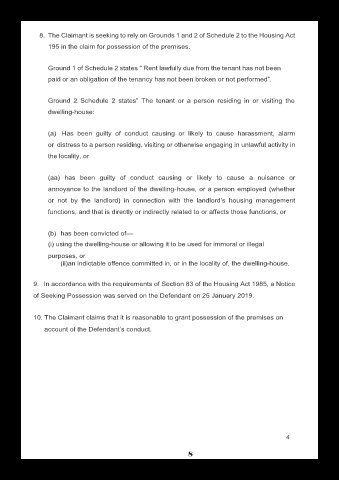 8. The Claimant is seeking to rely on Grounds 1 and 2 of Schedule 2 to the Housing Act