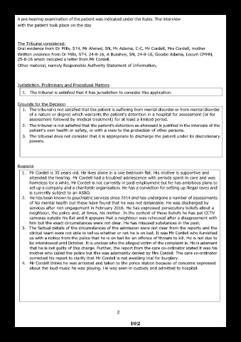 clinical team were not able to tell us whether or not he is on bail. It was Mr Cordell who furnished