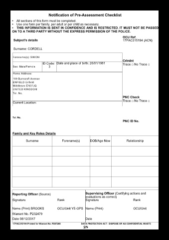 17PAC315194 Printed for Warrant No. P207268 DATA PROTECTION ACT - DISPOSE OF AS CONFIDENTIAL WASTE