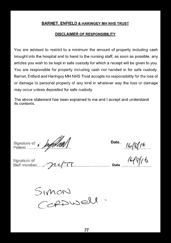 Barnet, Enfield and Haringey MH NHS Trust accepts no responsibility for the loss of