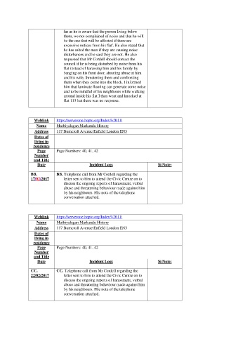 excessive notices from his flat'. He also stated that