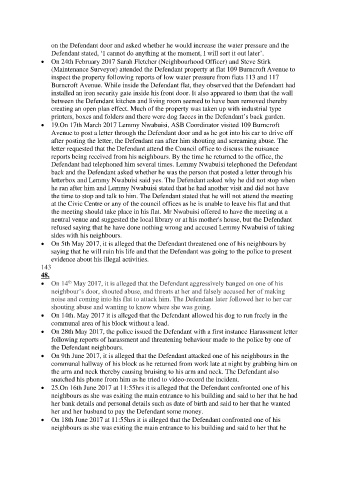 • On 5th May 2017, it is alleged that the Defendant threatened one of his neighbours by